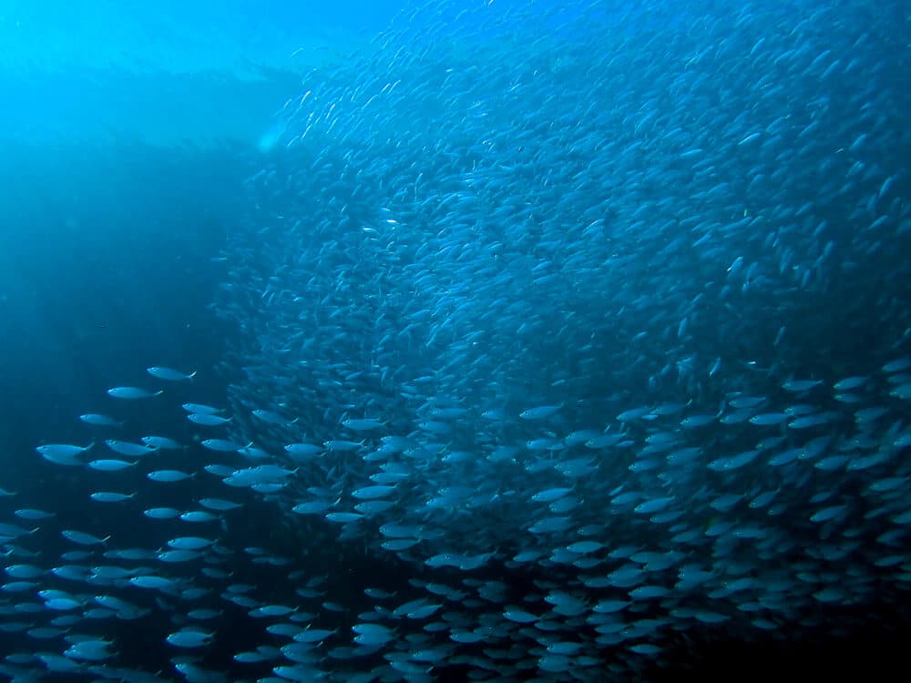 今日も、中層にはメアジとミズンの群れが~