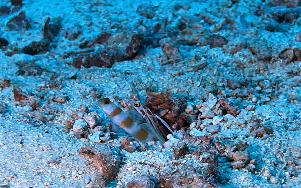砂地に降りると、 ヤシャハゼやヒレナガネジリンボウが見られます