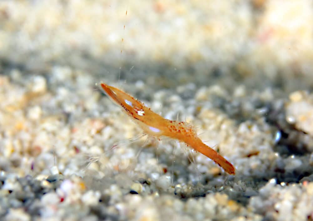 砂地を進みながら、サンゴ礫を捲るとこんなエビが出てきましたー