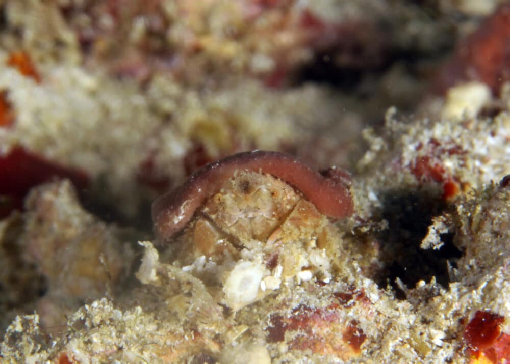 最後は、再び落ちてるトゲトサカにシロオビコダマウサギが付いて居るのを発見