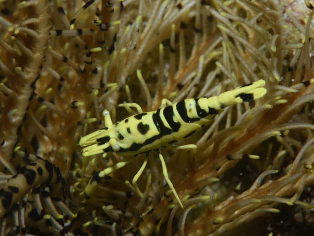 戻りながら石を捲るとサンゴヒメエビが出てきました