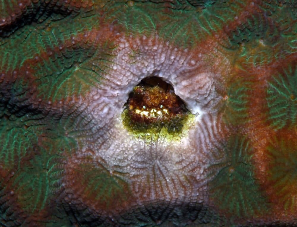 途中、サンゴヤドリガニの仲間を撮影