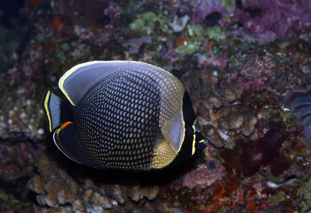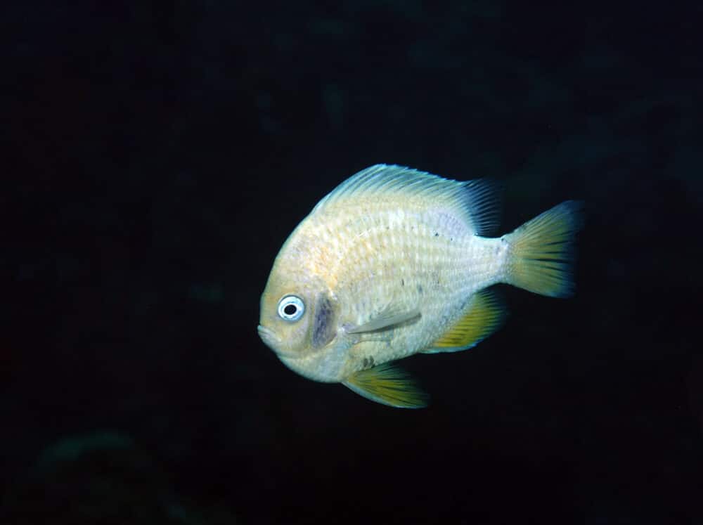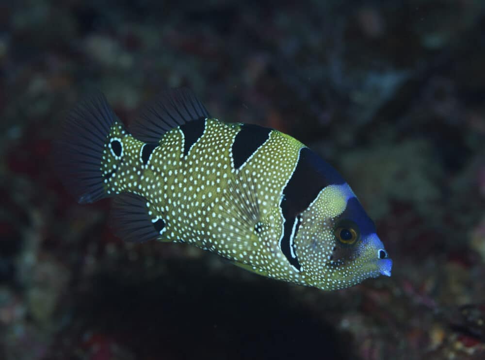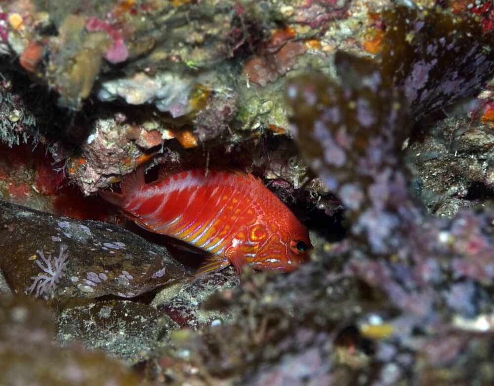 ふと石の上を見ると、オシャレハナダイが乗っています