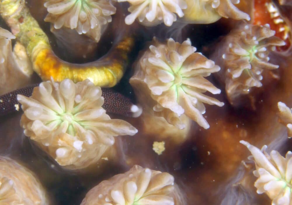 周囲の石を捲ってみると、サンゴヒメエビ属の1種やフタスジハゼ等が出てきました