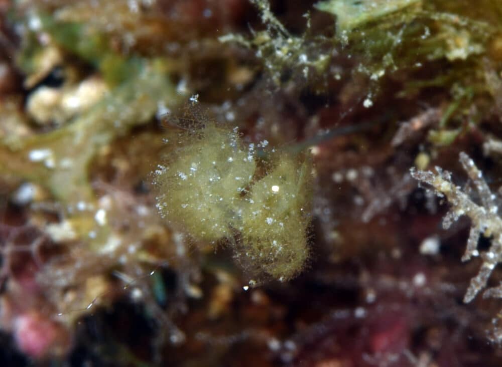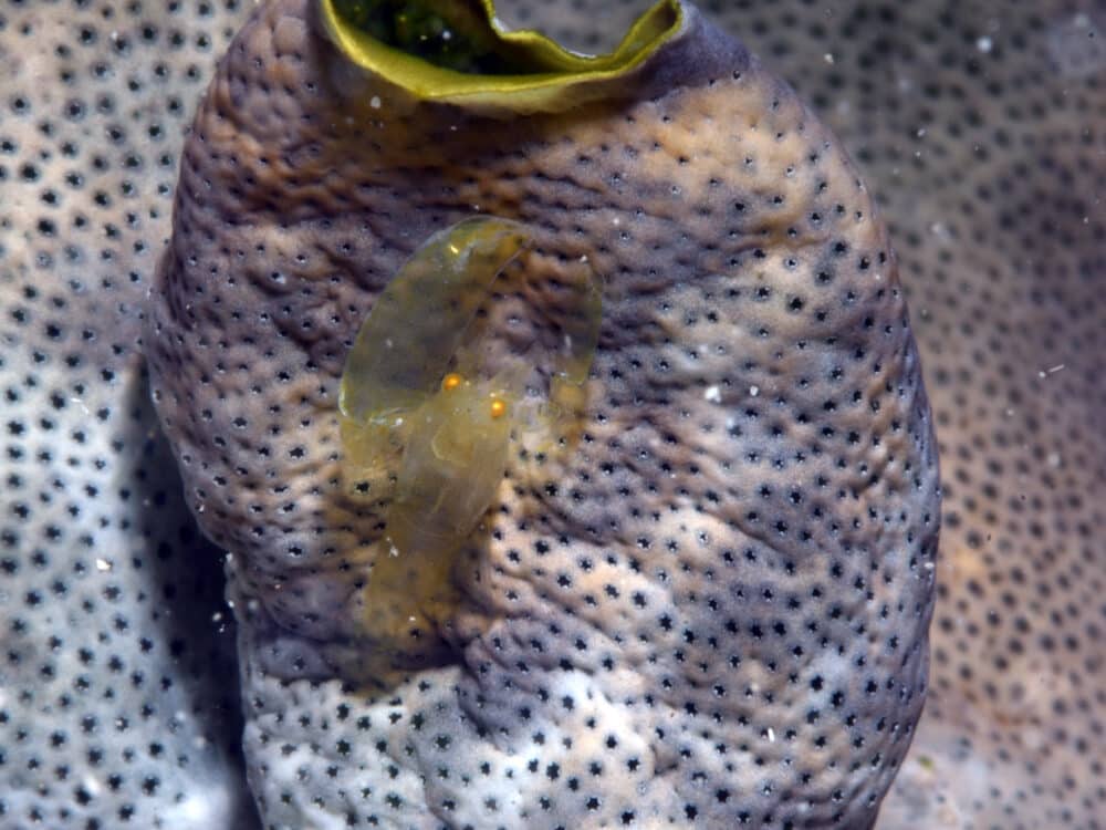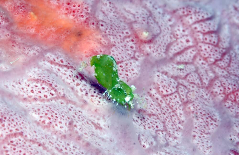 途中、このカイメンカクレエビ属の1種を確認